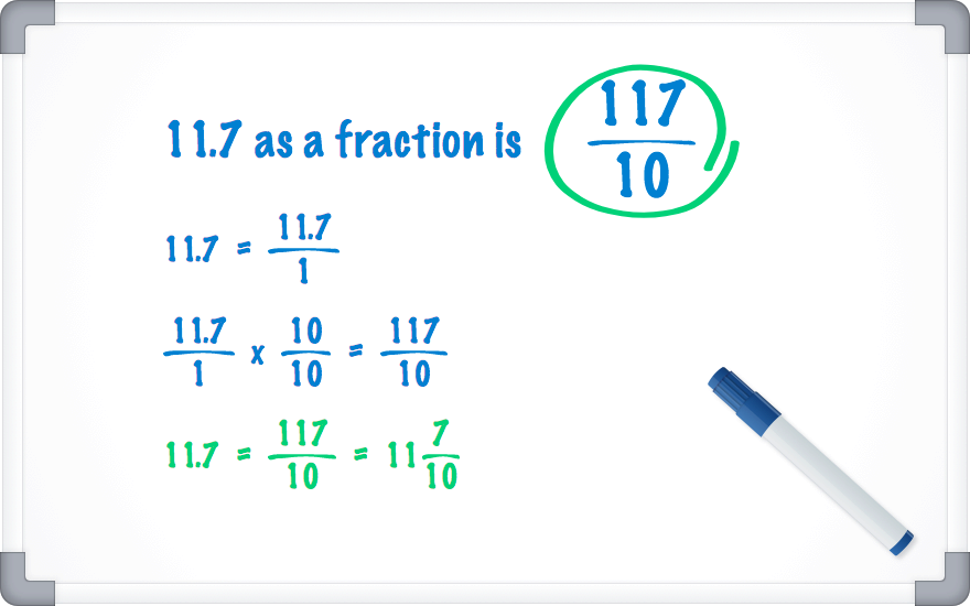 Follow the next steps and learn how to turn a decimal into a fraction. In this case, we’ll show you how to write 11.7 as a simplified fraction: