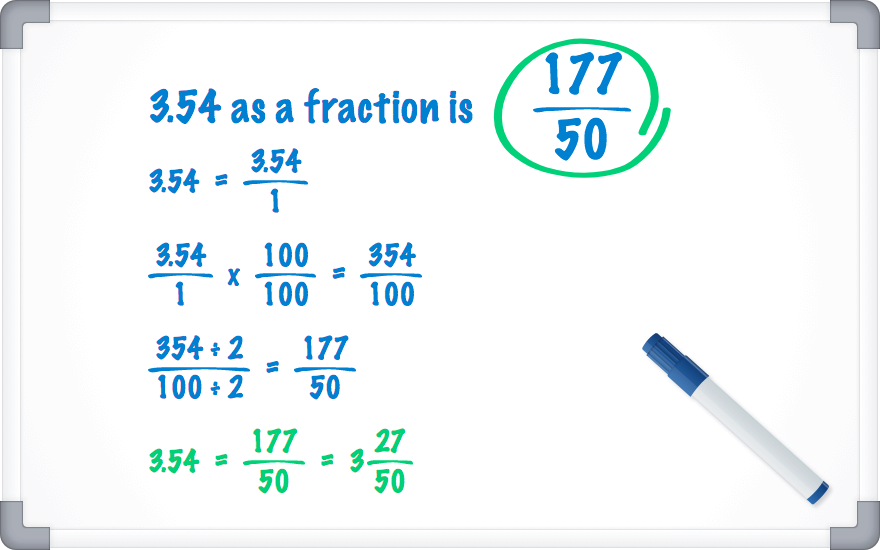 Follow the next steps and learn how to turn a decimal into a fraction. In this case, we’ll show you how to write 3.54 as a simplified fraction: